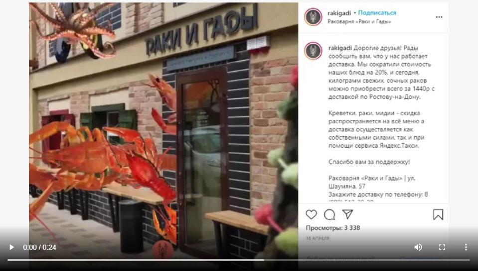 Неплохой пример от ростовской раковарни «Раки и Гады»