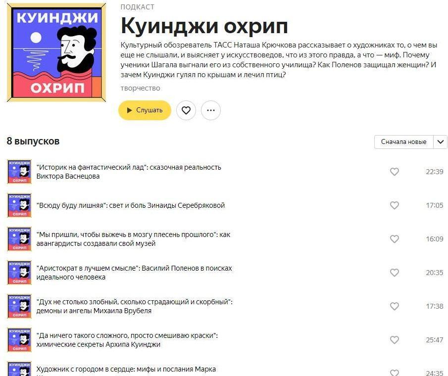 «Куинджи охрип» – популярный образовательный подкаст от ТАСС. Если вы ничего не знали об искусстве, с его помощью можно восполнить пробелы
