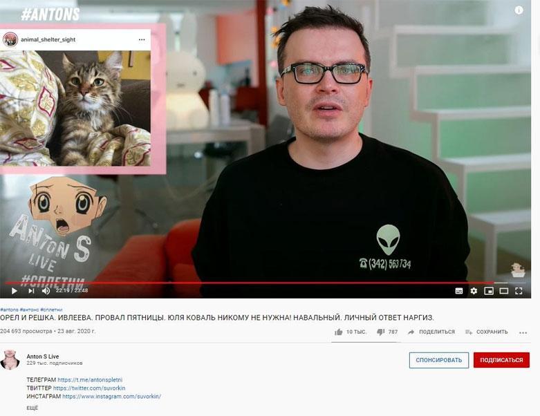 Канал о сплетнях в шоубизе на почти 230 тысяч подписчиков редко берет рекламу, но регулярно пиарит приюты для животных, которым нужна помощь кормом, медикаментами и так далее