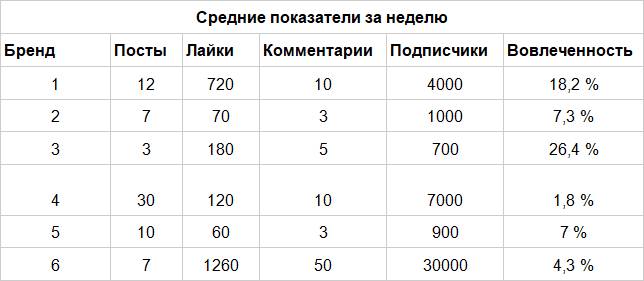 Например, первый конкурент может постоянно общаться с аудиторией в комментариях, а третий – мастерски подает контент через качественные фото и художественные описания в постах. SMM-щик все это анализирует, чтобы понять, какие численные показатели у постов считать за норму в нише.