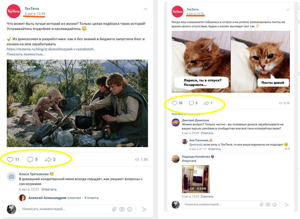 Мемный пост получил 70 лайков и охватил 5 тысяч пользователей, а анонс статьи в блог – 11 лайков при охвате 1,5 тысячи пользователей