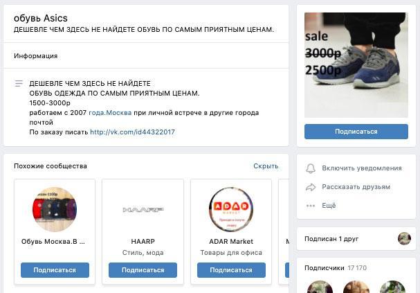 Описание магазина в группе во ВКонтакте