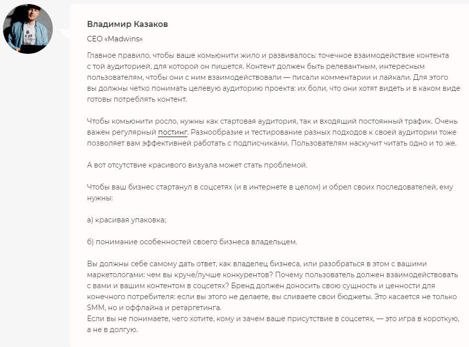 Работа с аудиторией уникальна для каждого проекта, потому что она зависит от множества компонентов: позиционирования, грамотного анализа ЦА, генерации контента и так далее. Каждый проект требует индивидуального подхода.