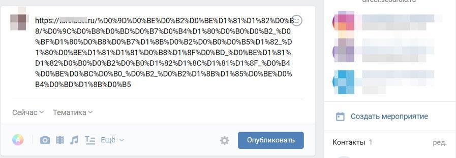 • созданный шортлинк можно было опубликовать во всех нужных соцсетях – так, например, Фейсбук* ругается на ссылки, сокращенные через встроенный инструмент ВКонтакте.