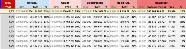 Так, например, можно определить, насколько выполнен или перевыполнен план за каждый период для аккаунта
