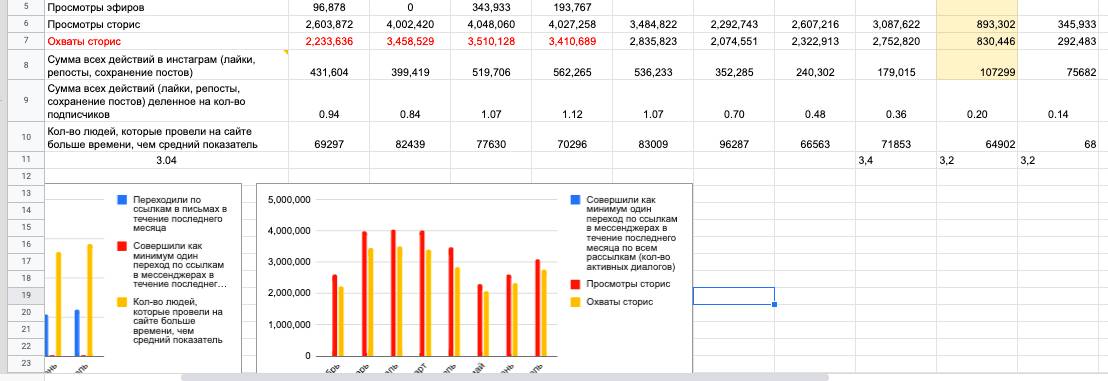 Так, например, при внедрении нового формата публикаций – прямых эфиров – в отчет внесли метрику «Просмотр эфиров»