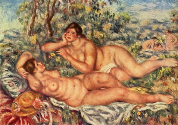 Интересно порассуждать. Любование зрелой женской красотой, когда «недостатки» становятся под взглядом художника достоинствами, и он выплескивает на холст сгусток эротики, приходит в основном зрелом его возрасте, с ростом живописного мастерства, становлением собственного стиля, но самое главное – по мере накопления жизненного опыта, в том числе и мужского. Творческая судьба Ренуара здесь гиперпример этому. Смотря на его ранние работы или даже среднего периода творчества, зритель видит в первую очередь красоту и радость, чувственность же не так выступает на первый план, она весьма сдержана, порой содержится в деталях и намеках. Взрыв эротики (именно взрыв) на его полотнах произошел намного позже, в возрасте несколько старше среднего. Тем не менее, начав свой художественный путь с мастера по росписи фарфора в стиле Франции 18 века, он считал своими кумирами Ватто, Фрагонара и Буше. Вот его образцы для творчества, вот, что затачивало его «взгляд смотрящего» :