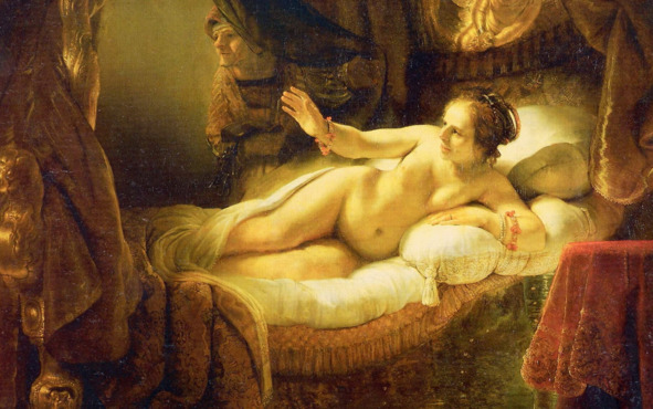Даже древнегреческий сюжет о Данае, матери героя Персея, Рембрандт невольно превращает в одну из самых эротичных картин в мировой живописи, переведя его в «земную плоскость» Если кратко, то Зевс под видом золотого дождя проник к Данае, дочери царя Акрисия, который заключил ее в подземелье, дабы не сбылось предсказание, что её сын его убьёт.