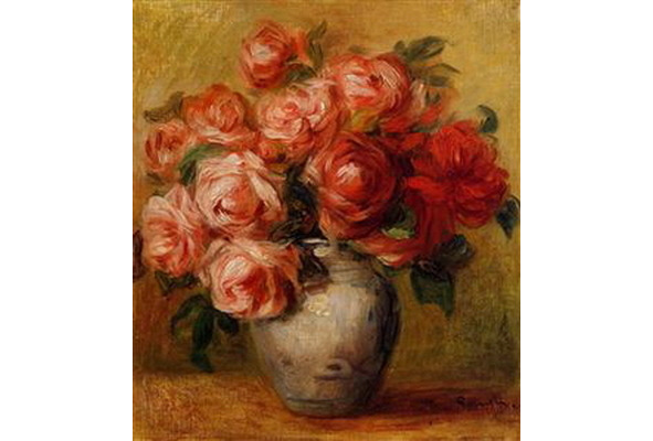 Любимая жена Алина, не сходящая с его полотен всю их совместную жизнь, умерла 27 июня 1915 года. Прежде чем она испустила последний вздох, художника в инвалидном кресле отвезли попрощаться с ней. Ренуар долго смотрел на лицо той, с которой счастливо прожил тридцать пять лет. А потом быстро поцеловал ее в губы и скомандовал Габриель: «Пошли!», пока слезы окончательно не задушили его. Работа над прекрасным – вот средство хоть как-то пережить горе. Он просит отвезти его в мастерскую, где немедленно садится к мольберту, с неоконченным натюрмортом с розами. Художник давился слезами и резкими мазками рисовал эти розы, словно утверждая торжество жизни над смертью.