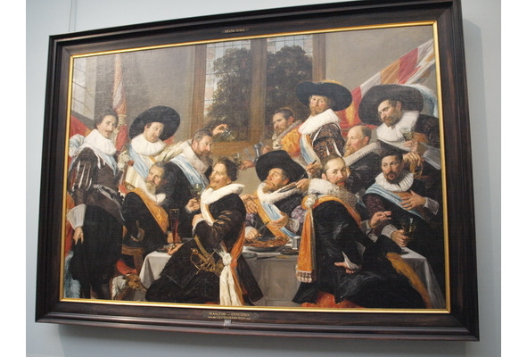 Вот еще семейство групповых военных портретов. Изображены банкеты!!! офицеров роты святого Георгия. Кстати автор не кто-то, а Франс Хальс.