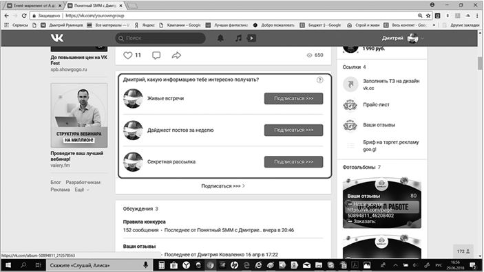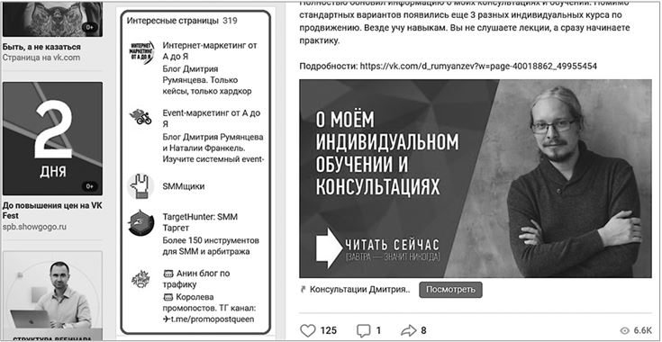 Одним словом, если вы хотите получать дополнительный трафик и продвигаться в 2–3 раза быстрее, вам надо постоянно мотивировать людей возвращаться в группу снова и снова. А сделать это можно только за счет качественного контента: уникальных статей, интересных дискуссий, консультирования и других механик, о которых я расскажу далее.