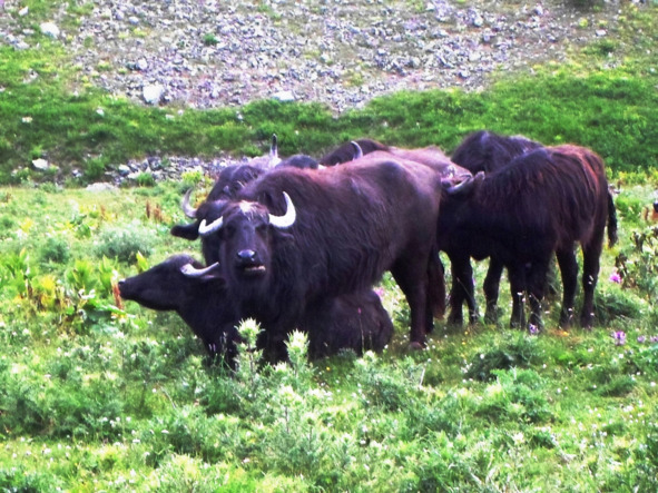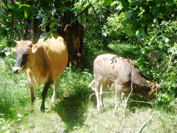 Послышался мелодичный звон. Из леса вышли коровы, быки и телята с колокольчиками на шее. Пора доиться.
