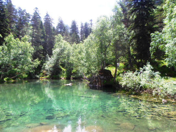 В озере пятнистая форель играла с желтым сомиком в догонялки.