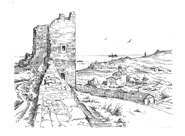 Ярко светит солнце мощностью в двенадцать тысяч люкс, дует холодный небесный ветер. По морю ряды пенных валов пробираются к берегу нескончаемым белым напоминанием о прошлых скитаниях. Корабли ушли с феодосийского рейда. Застывшие сгорбленные фигуры людей на море что-то продолжают высматривать на горизонте. Дети младшего школьного возраста, с не по размеру большими ранцами за спиной, идут из школы, зашли на море – посмотреть на шторм. Бегают по молу наперегонки с брызгами.