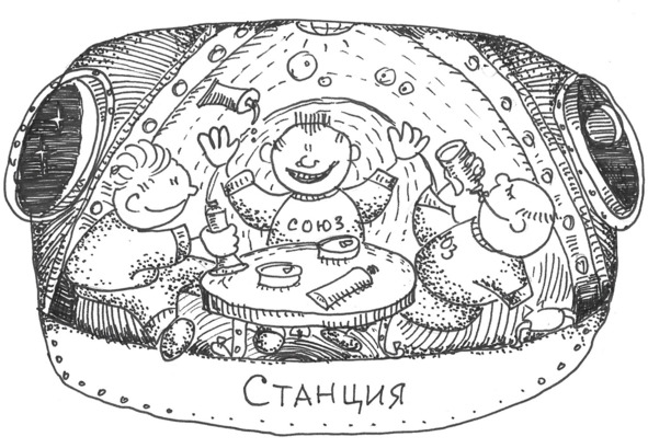 – Ну, что, товарищи? – занял паузу старожил, пока вновь прибывшие закусывали, прикладываясь к тюбикам. – Подведем баланс! Нас трое, и потому «на троих». Их четверо. Две пары. Два астронавта и две астронавтки.
