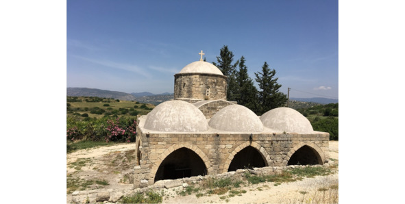 По сведениям Кипрской организации туризма (КОТ), это одна из самых редких на Кипре с точки зрения архитектуры церквей XV в., несмотря на её разрушение во время землетрясения в 1953 г. Такой тип постройки – трёхклетная базилика с куполом – был широко распространён на острове в первой половине XVI в. До 1953 г. храм был увенчан семью, а сегодня тремя куполами-полусферами, и его архитектуру дополняет крытая галерея с арками. Первоначально церковь была полностью расписана, но сейчас паломники могут увидеть лишь фрагменты повреждённых фресок XV в., в частности фреску св. Екатерины. Храм также просто найти с трассы Polis – Mesogi – Pafos по указателю Kritou Terra (следующий после Akourdalia). Недалеко от этого отворота, с правой стороны автомобильной дороги стоит базилика в пустынном месте в окружении склонов, дышащих приторным испарением олеандров среди иссохшей травы, и оголённых полей, залитых настырным солнцем.