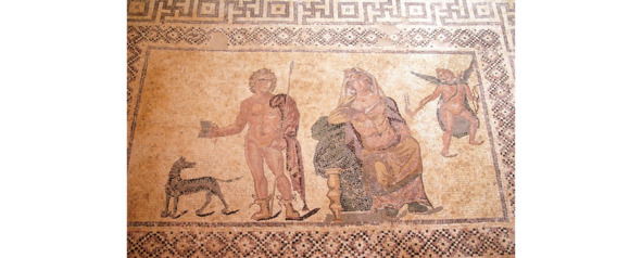 (House of Theseus) из-за её основного мозаичного сюжета – поединка афинского героя с Минотавром в критском лабиринте. Раскопки показали, что строительство виллы, по всей видимости, началось во второй половине II в. на развалинах эллинистических и римских построек. Постройка просуществовала до начала VII в. Изучив планировку, масштаб, роскошные декорации, мраморные статуи, богатые мозаики и фрески, а также латинские надписи (очень редкие на греко-говорящем Кипре), археологи предположили, что вилла была официальной резиденцией губернаторов, проконсулов провинции Кипр. Вилла Тесея – это самая крупная постройка такого типа, найденная на Кипре, и одна из самых крупнейших в Средиземноморье. Она состояла из комнат, залов, банного комплекса, кладовых, где были найдены мраморные статуи конца II в. и начала III в. Среди них статуя Диониса, две статуи Афродиты, Артемиды, Асклепия и пр., все они хранятся в музее г. Пафоса. На вилле размером 9600 кв. м было обнаружено 1400 кв. м мозаик, в основном геометрические узоры и всего десять процентов – мозаики с фигурными изображениями. Мозаики на вилле Тесея относятся к разным периодам времени с III по V вв. Итак, рассмотрим вблизи мозаики виллы Тесея.
