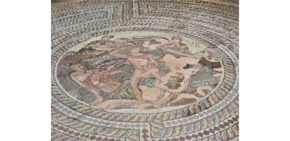 Археологи датируют эту мозаику концом III в., началом IV в. Сцена с фигурами пострадала, скорее всего, во время землетрясения IV в. и подлежала восстановлению, возможно, в конце IV в. Верхняя часть медальона была изменена, и белый фон, по всей вероятности, заменил головы афинских заложников, наблюдающих за схваткой из-за скал. К ранней стилистической традиции, восходящей к эллинизму, близки изображения божества лабиринта и Ариадны. Напротив, головы Тесея и персонификации Крита отражают стиль приближающейся византийской эпохи. Они схожи с лицами христианских святых на мозаиках и фресках в первых церквях. Культовая обстановка сцены производит странное впечатление, в ней фигуры словно застыли в своих позах. Несмотря на драматизм сцены, она лишена выразительности, как на более ранних изображениях. Стилистические качества фигур и необычное иконографическое богатство выделяют эту мозаику как исключительное творение, свидетельствующее о таланте и изобретательности художников, работавших в то время на Кипре.