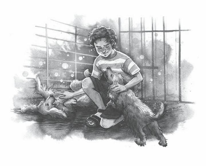Пёс коротко гавкнул. Егор смело вошёл в вольер вслед за Светой, присел на корточки, обнял Тайфуна за шею. Пёс положил морду мальчику на плечо.