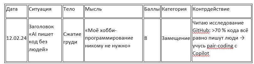 Шаблон строки: Дата / Ситуация / Тело / Мысль / Баллы / Категория / Контрдействие