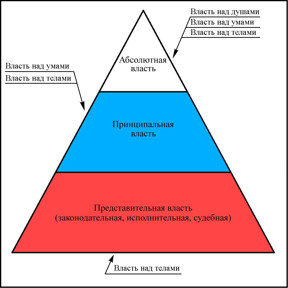 В силу того, что устройство власти является производным от человеческой природы, для управле-ния двухмерным человеком, необходимым и достаточ-ным условием является наличие двухуровневой системы власти. Соответственно, для управления трехмерным человеком необходимым и достаточным условием является наличие трёхуровневой системы власти.