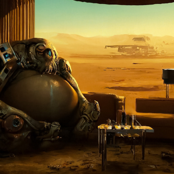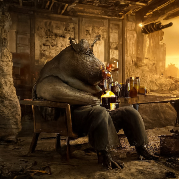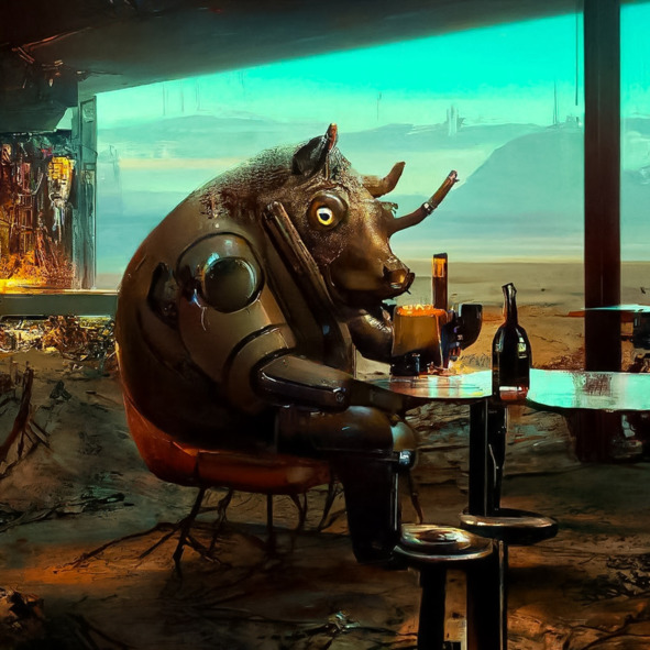Запах в баре был пропитан алкоголем, повсюду мусор и битая посуда, стены ободраны и разрушены. Пройдя внутрь, Зевен остановился и замер от ужаса. За столом сидели три лютикона, он не привык их видеть таких размеров… Они были огромные. Сами лютиконы замерли и смотрели на Зевена.