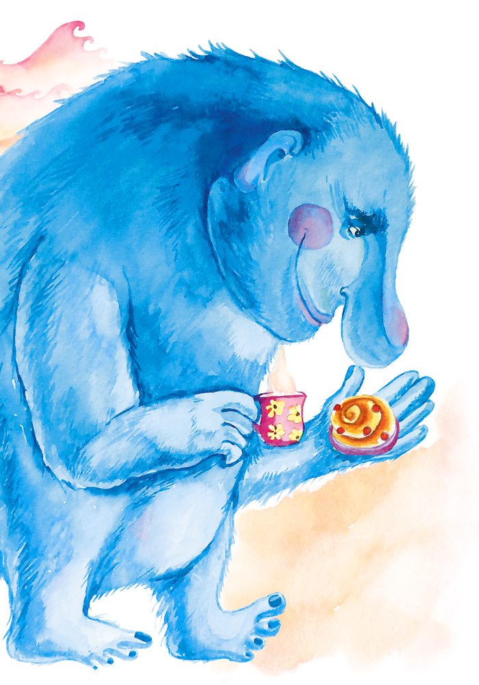 – И, не успела она еще что-то сказать, как перед ней выросло из песка удивительное существо, окутанное синей шерстью. Синий мех обволакивал большое и грузное тело. У него были добрые глаза и большой, круглый нос. Руки были тоже большие, синие и напоминали человеческие.