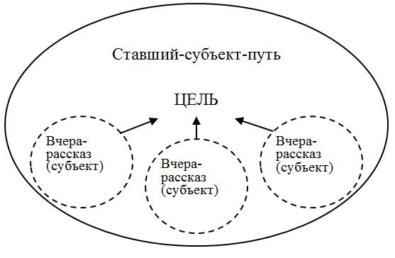 – Схема 2. Путешествие через движение к цели, которая «больше», нежели вчерашние интересы глобальных представлений101 для данной среды, то есть формирование «нового направления», где происходит снятие всех предыдущих противоположностей и проблем.