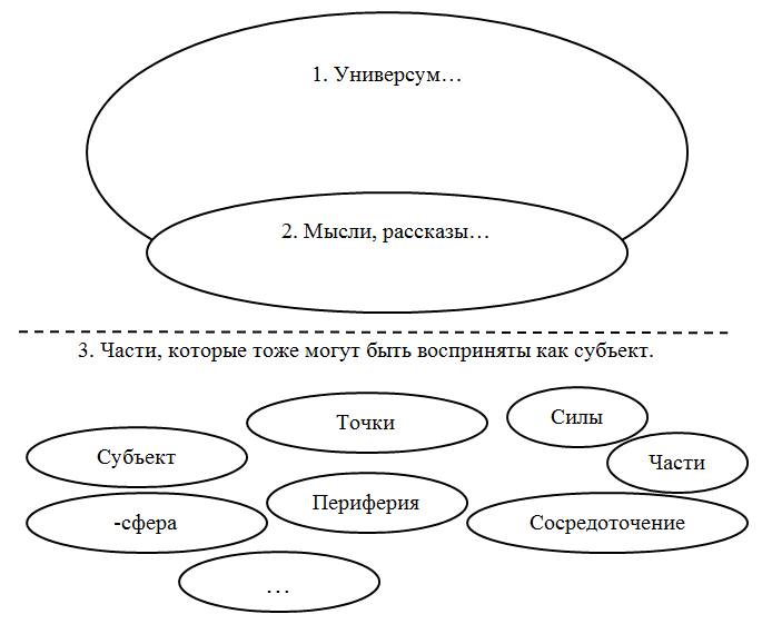 4. Для общей части – это, например, рассказ о путешествии на различные периоды или решение вопроса «о том, куда и как можно направить мысль». Это также может быть «представление» о том, что можно предложить различным мыслям для их собрания под иное предназначение, то есть формирование из них другого сосредоточения.