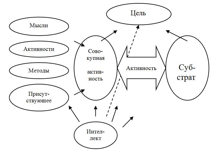 «Источник» активности является «тем», «кто» руководит движением, в таком ограниченном представлении этот источник тоже может быть воспринят как активность, которая либо выражает «интересы», либо с помощью различных механизмов ведет «это» к намеченной цели. В таком контексте и возникает «определенная необходимость» в интеллекте (Схема 23).