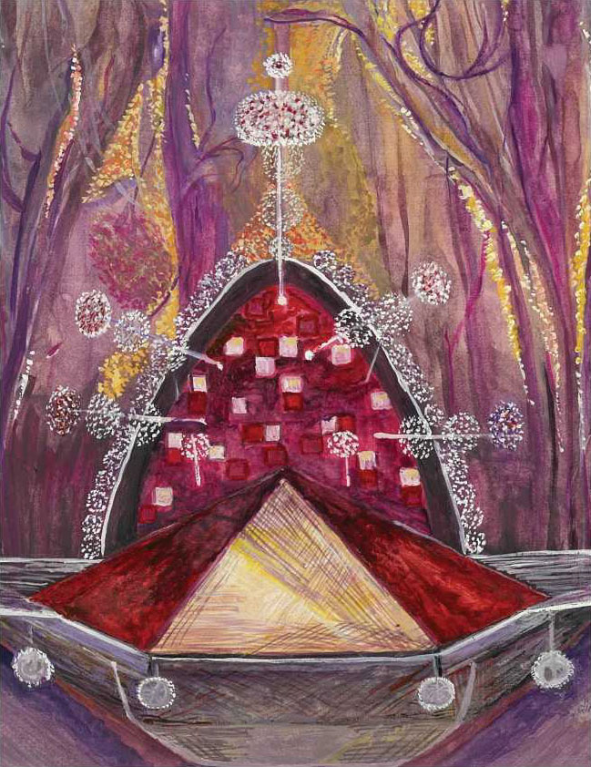 На нём появились длинные твёрдые отростки, на которых было густое скопление мелких элементов, вращающихся вокруг себя, даже раздавался какой-то треск среди них. Потом появились крылья, послышался громкий треск, в одном месте он будто лопнул, но это отворились треугольные двери, изнутри раздавались какие-то звуки и лился тёплый свет.
