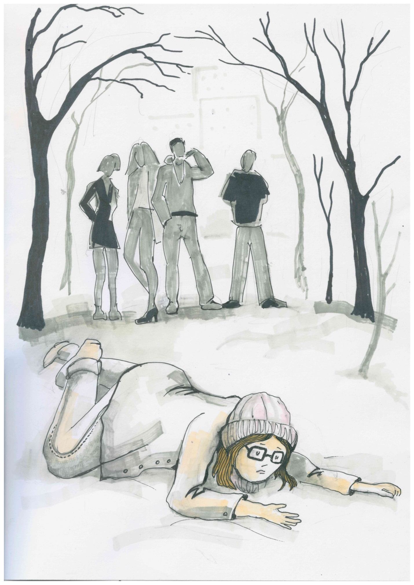 Прибавляю шаг, стараясь быстрее уйти от этой мерзкой компании. Слезы застилают глаза, из-за чего вижу еще хуже. Поэтому не замечаю какую-то выбоину на дороге, спотыкаюсь и с размаху бухаюсь в снежную кашу. Очки отлетают в сторону, хорошо, что не далеко и не разбились. Удается их быстро нащупать и водрузить обратно на нос.