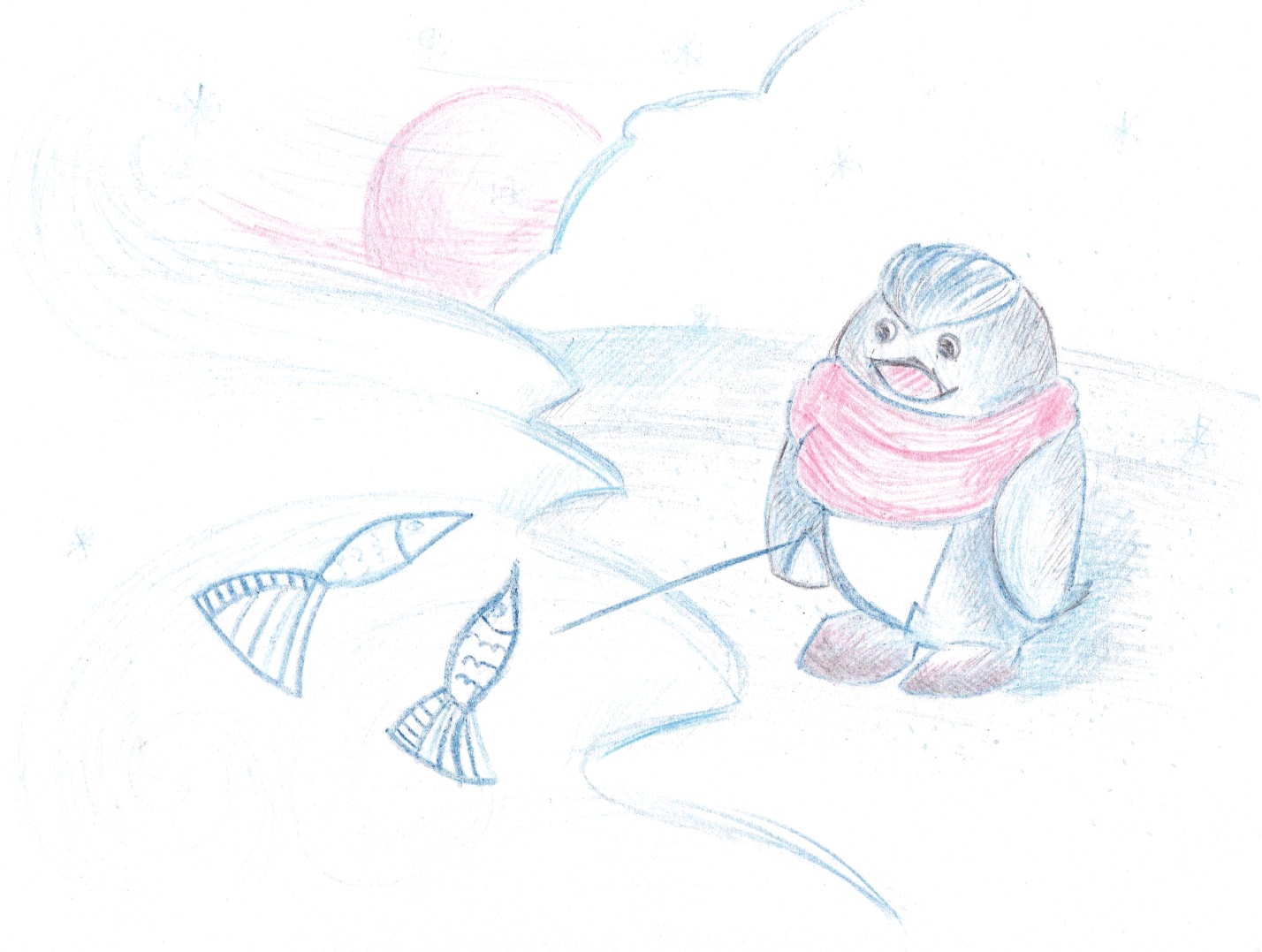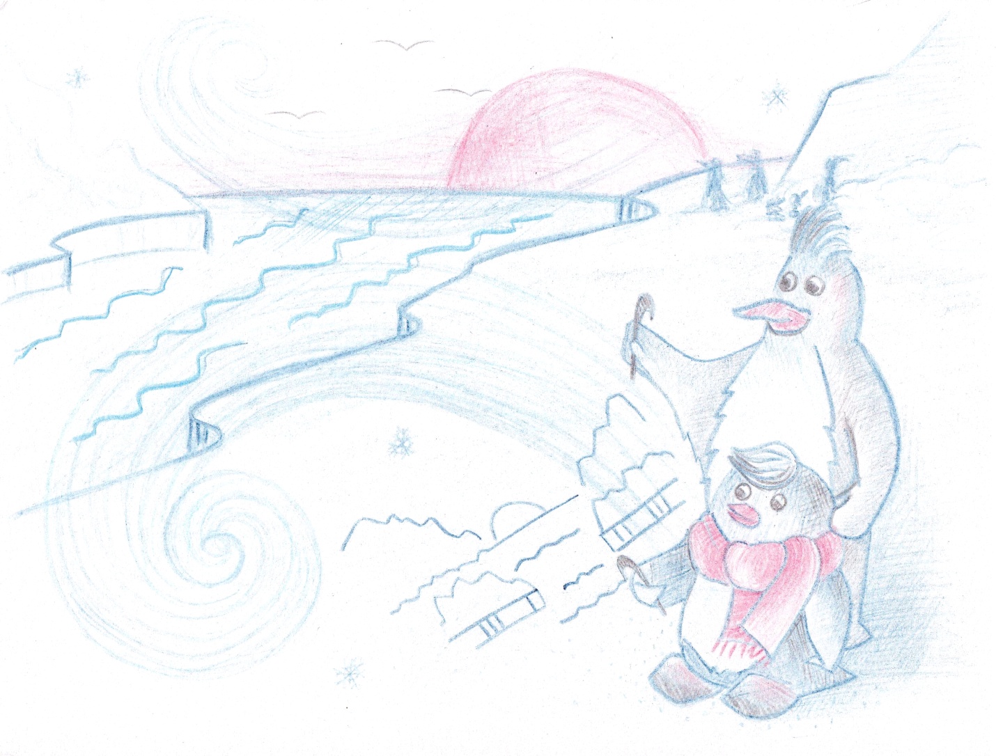 Пингвинёнок рисовал и рисовал, пока однажды не произошло одно странное событие.