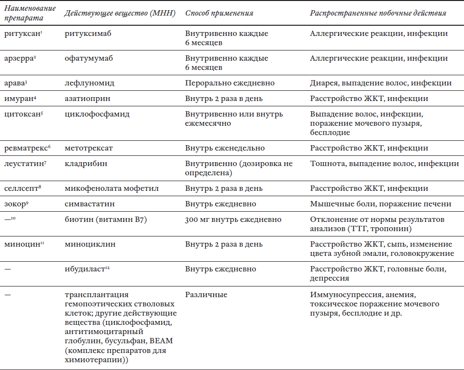 Примечание. При трансплантации гемопоэтических стволовых клеток для лечения РС могут применяться различные методы кондиционирования (подготовительной химиотерапии) с собственными показателями эффективности и рисками.
