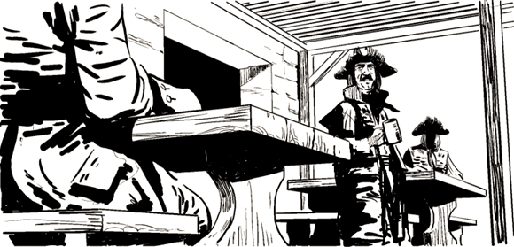 В этот момент отворилась дверь, и в таверну вошел Бен. Поприветствовав всех кивком, он скромно подошел к хозяину. Дефо, оглянувшись и признав горожанина, не заподозрил ничего дурного и продолжил: