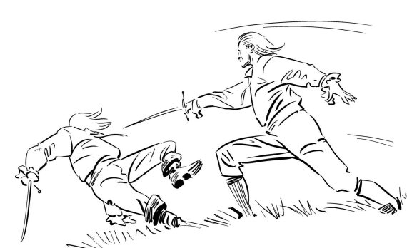 Но тот серией ловких ударов заставил Ивана пятиться. А тут еще вечерняя роса, как на грех, – поскользнулся наш герой и через мгновение лежал на сырой траве. Фалинелли навис над ним, приставив острие клинка к груди: