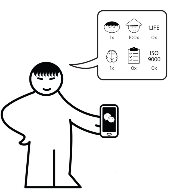 Проблема в том, что файлов много, диалогов в WeChat – ещё больше, поэтому информация в какой-то момент пропадает. Кто-то из поставщиков умудряется найти нужные файлы в истории общения, но чаще обращается к заказчику и просит переслать снова. Иногда поставщик находит старую версию файла, в то время когда новая с изменениями пропадает. Если поставщик постесняется или забудет сверить файлы с заказчиком, в устройство могут установить устаревшее программное обеспечение и изготовить печатные материалы, которые не соответствуют новым требованиям перевозок и торговли. Проблемы решаются ручным трудом: ПО меняется рабочими, забытые значки и стикеры наклеиваются.
