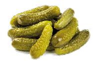 put burgers, then pickled cucumber rings and cover these with upper halves of rolls