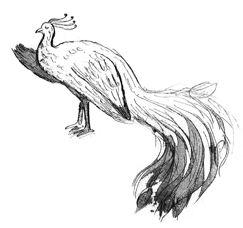 Эмма посмотрела в ту сторону, куда указывала волшебница. Там под дубом находилась большая птица, напоминавшая павлина, только с ярким золотисто-огненным оперением. Такая же птица была изображена на гобеленах в прихожей.