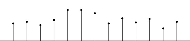 На рис. 2.5 показан фрагмент звука или, скажем, визуальной сцены вдоль горизонтальной линии. Идея Котельникова работает в обоих случаях. Прямая линия внизу – нулевая громкость или нулевой уровень яркости, полная тишина или полная темнота. Кривая – это изменение громкости звука или изменение яркости визуальной сцены по мере того, как вы перемещаетесь вправо по линии. В любом случае мы отметим в исходном фрагменте черными зарубками точки, расположенные на одинаковом расстоянии друг от друга, – отсчеты. Мы начнем приходить к пониманию, отталкиваясь от этого одномерного примера, а затем постепенно перейдем к двум измерениям, необходимым для полной визуальной сцены. Точно так же мы поступили с волнами Фурье в первой главе.