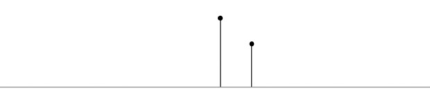 Здесь нам снова поможет пример с волной, но для простоты мы возьмем только два центральных сокселя (рис. 2.10). (Чуть позже от них мы перейдем к пикселям.) Напомню, что соксель – это отсчет для кривой, изображающей аналоговый звук, а ее высота над нулевой линией обозначает его громкость. Таким образом, высота сокселя представляет собой громкость звуковой волны только в той точке, где сделан этот отсчет. Соксель справа будет менее громким, чем тот, что слева.