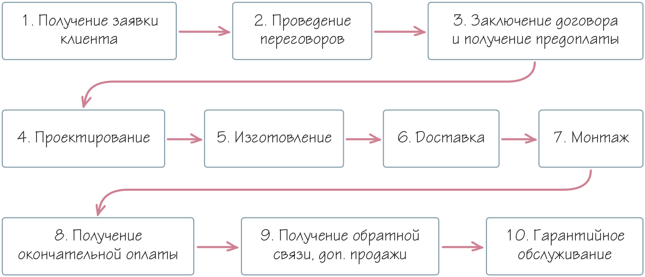 * * *Бизнес-процесс – это четкий, зафиксированный письменно алгоритм выполнения некой деятельности. Например, поиск клиента, выполнение заказа и т. д. Бизнес-процессы многократно повторяются (рис. 1).