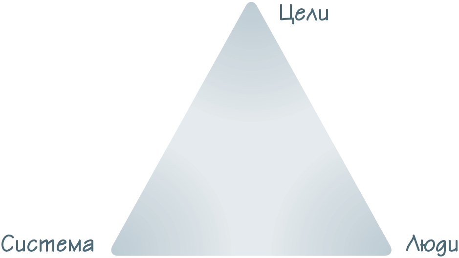 Эта книга посвящена бизнес-процессам. Они – ядро наведения порядка. Но важно отлаживать и другие части треугольника, в том числе – элементы системы. Иначе получится «табуретка на одной ноге».
