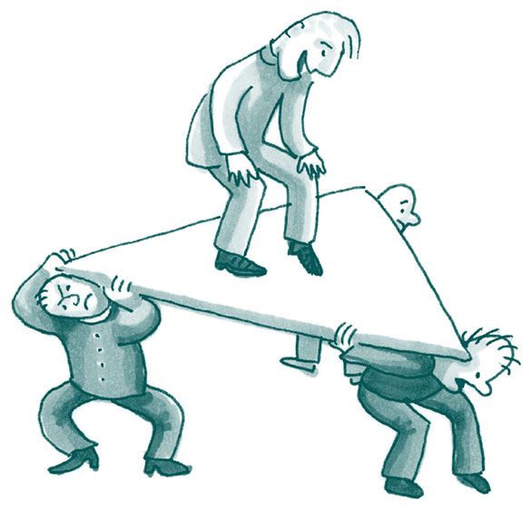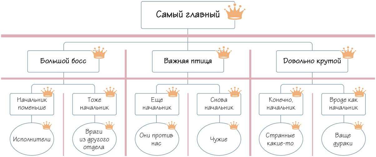 • На головах руководителей и сотрудников вырастают короны – каждый мнит себя главным. И меряется короной с соседом. Примерно так (рис. 6):