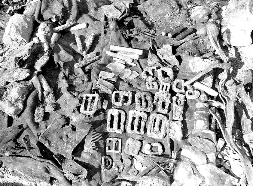 Личные вещи погибших под Бунятино. В правом верхнем углу солдатские медальоны.