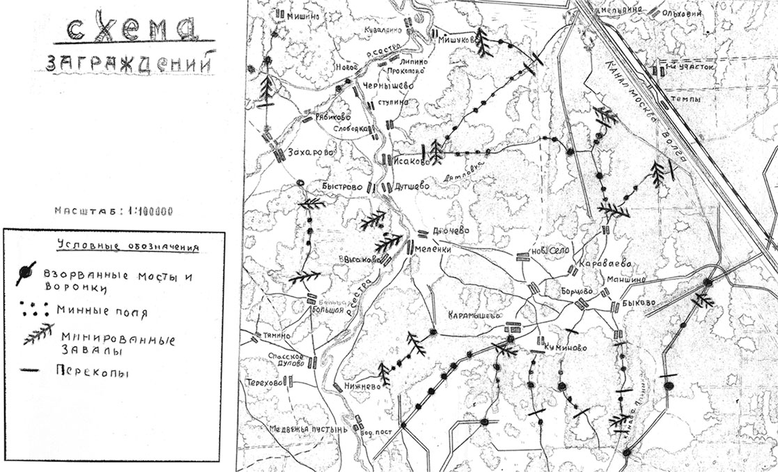 С востока на рубеж канала Москва – Волга уже начали прибывать бригады 1-й Ударной армии. В частности, в районе Татищево – Вербилки заняла оборону 55-я стрелковая бригада. После ввода в бой частей 1-й Ударной армии была установлена новая разграничительная линия между ней и 30-й армией. Эта линия проходила по оси Татищево – Рогачево. Причем и тот, и другой пункт входили в зону ответственности 30-й армии. В соответствии с этим новым разграничением ее части, оказавшиеся в районе Дмитрова, переместились на север и расположились по восточному берегу канала (бригады 1-й Ударной армии передислоцировались на юг). С этого момента в течение недели 30-я армия вела оборону на стационарном фронте, южная часть которого проходила по каналу Москва – Волга. Во время перегруппировки 30-й армии с ее левого фланга ушли все танковые соединения, до того момента воевавшие на Дмитровском направлении. В результате на линии канала осталась только пехота (923-й стрелковый полк) и кавалерия (18-я и 24-я кавалерийские дивизии). Перед их линией обороны (между каналом и рекой Яхрома) осталось более двух десятков никем не защищенных сел и деревень. О том, что произошло на этом обширном пространстве ничейной земли в последние дни ноября и в начале декабря 1941 г. известно мало.