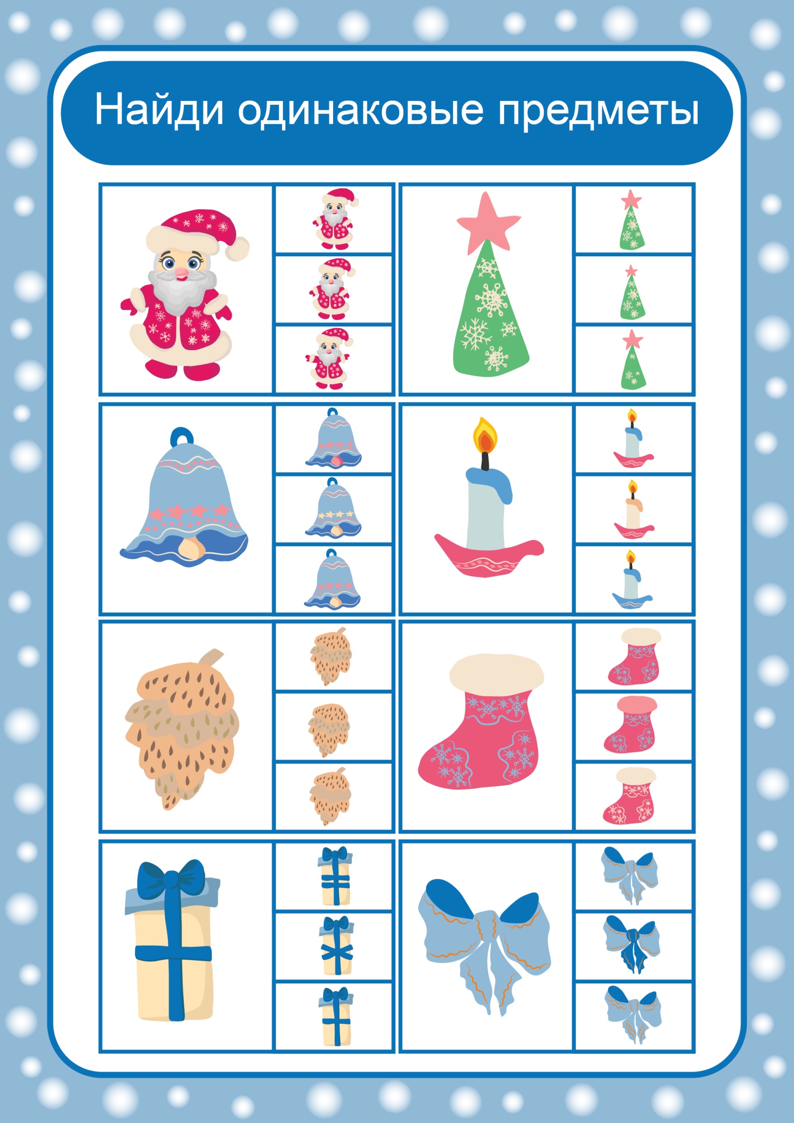 Выбери из трех картинок одинакового персонажа или предмет и обведи его в кружок.