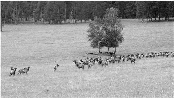 Миновав деревню, движемся вдоль речки и через четыре километра поворачиваем на юг, где упираемся в ворота верхнего каракольского маральника. Володя спешивается, открывает-закрывает ворота, следующие два километра следуем нижним краем маральника вдоль границы широкой поляны. Олени пасутся по верхнему краю этой ровной, слегка возвышающейся елани у кромки леса метрах в трехстах от нас. Мы их тревожим, осторожные животные неторопливо скрываются среди деревьев. На седьмом километре выезжаем из маральника и тщательно запираем за собой высокие ворота. Дорога уходит правее на югозапад, начинается густой смешанный лес. Втягиваемся в затяжной девятикилометровый подъем вдоль речки Калбала. Пару раз группу накрывает внезапный короткий и холодный проливной дождь. Начиная с высоты примерно 1500 м (деревня находится на высоте 895 м) в лесу вдоль дороги преобладает крупный сибирский кедр. Спустя три часа после начала движения поднялись на голый травянистый перевал – широкую ровную полку на высоте 1680 м с хилым леском на некотором отдалении по обеим сторонам. Небо покрывали серые облака, моросил противный дождик. Погода испортилась. Не знаю почему, но местные именуют перевал Келейским.
