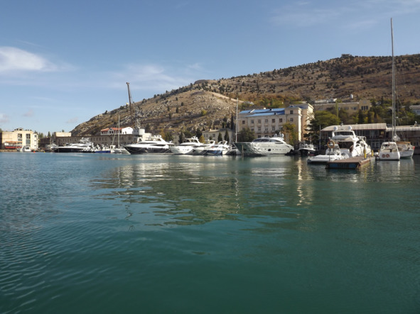Вокруг горы. Виднеется город Балаклава и морская бухта. Вид красивый, глаз не оторвёшь. Этому морскому городу несколько тысячелетий. Его основали древние греки. Автобус остановился в центре города, недалеко от морской бухты. Мы вышли из автобуса, и пошли на пристань. Вдоль пристани стояли яхты от малых до больших. Явно там находились яхты олигархов…