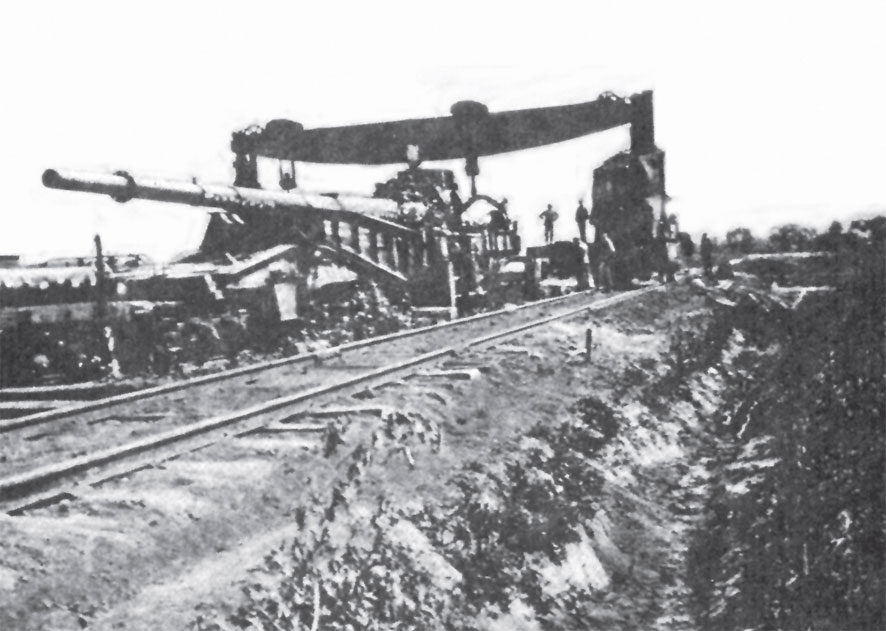 Действительно, германские оружейники усовершенствовали существующие на тот момент орудия калибра 381-мм с длиной ствола 17,1 м. Ствол рассверливали и вставляли длинную внутреннюю трубу, выступавшую на 12,9 м. Таким образом, общая длина пушки составляла 30 м. Каждое орудие пушки снабжалось 210-мм лейнером, который имел такую толщину, что после разгорания его можно было рассверлить до 240 мм, а затем – до 260 мм. Живучесть ствола составляла 150 выстрелов. После этого нужно устанавливать новый ствол. Немцы изготовили три железнодорожных транспортера, способных нести такую пушку. Главная балка опиралась на четыре тележки. Стрельба производилась с бетонного основания, верхняя часть которого имела возможность вращаться.